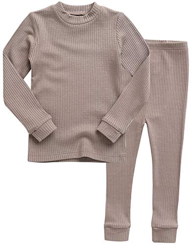 VAENAIT BABY Kids Boys Long-Sleeve Top and Bottom Modal Pajama Sleepwear 2pcs Set Rib Knit Beige S